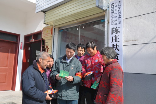 11月9日,江蘇省徐州市豐縣郵政分公司啟動(dòng)了黨建扶貧項(xiàng)目,并組織了以趙本增為“領(lǐng)頭雁”的黨員志愿者隊(duì)伍深入到與豐縣分公司簽訂扶貧合作協(xié)議的陳莊村進(jìn)行走訪調(diào)研,了解貧困人口比重、農(nóng)作物品種、貧困戶致貧原因等,并將趙本增“勞模工作室”作為黨建扶貧工作室與該村黨支部緊密聯(lián)系,確保“黨建扶智、精準(zhǔn)扶貧”政策落地。圖為黨員志愿者在調(diào)研的同時(shí)向貧困戶介紹“扶貧會(huì)員證”的用法。 □陳海彬 攝影報(bào)道