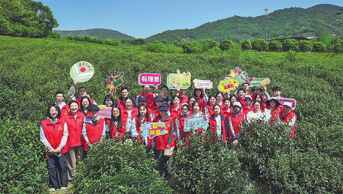 春茶貴如金。丁蜀鎮(zhèn)上壩村老上壩生態(tài)農(nóng)業(yè)發(fā)展專業(yè)合作社迎來了一年中最忙碌的采茶季。宜興市郵政分公司作為該合作社的黨建聯(lián)盟單位,在了解到合作社面臨采茶用工短缺的難題后,向全體團員發(fā)出助農(nóng)號召,成立“助農(nóng)采茶”志愿服務(wù)隊,以“采茶+直播”形式助力茶農(nóng)增產(chǎn)增收?!拔逅摹鼻嗄旯?jié)前夕,無錫市郵政分公司及所轄江陰、宜興市分公司團委聯(lián)合開展“點燃青春引擎 賦能‘錫’望田野再出發(fā)”“五四”青年節(jié)主題團日活動,組織40余名團員青年走進上壩村,開啟一場青年與鄉(xiāng)村振興雙向奔赴的“心靈之約”。