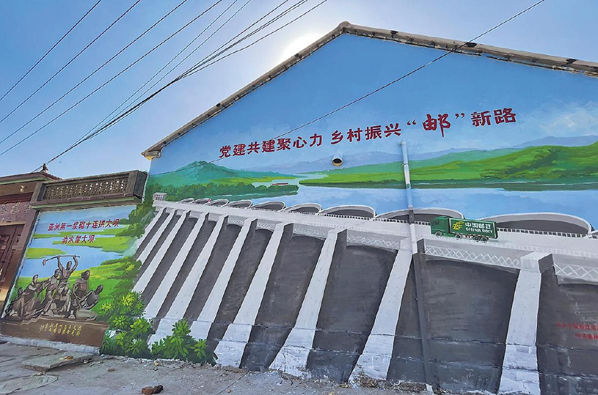 展示“亞洲第一漿砌石拱壩”的淌水崖水庫(kù)墻繪。
